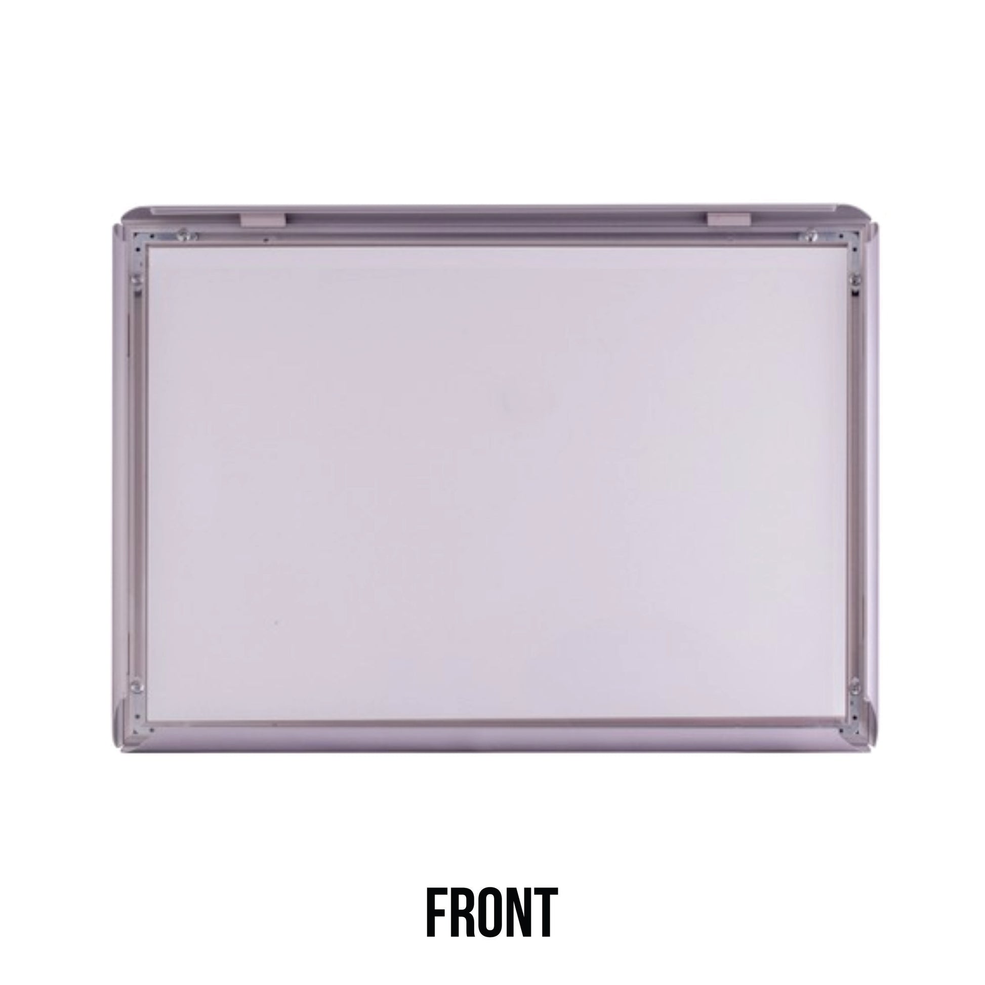 Crafted with an aluminium finish, the A4 & A3-sized snap frame combines both style and functionality, making it a perfect addition for offices, retail spaces, restaurants, or even your home. The frames smooth silver borders provide a clean, professional look that complements any decor while drawing attention to the content inside, whether it be certificates, diplomas, awards, art prints or personal photographs. The snap mechanism allows for quick and easy updates. Simply flip open the sides, insert your poster, certificate, or artwork, and snap it back in place. The anti-glare protective cover ensures that your content remains visible and protected from dust and fingerprints, while the sturdy back panel provides additional support to keep everything securely in place. Can be displayed in both portrait and landscape orientations; comes with pre-drilled holes for wall mounting.